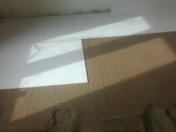 Есть у сухой технологии и недостатки. Если на листы гипсокартона, ДСП или фанеры, используемые для окончательного выравнивания, попадет вода, это приведет к серьезным неприятностям, так как пол начнет вспучиваться. Поэтому обязательно устраивается гидроизоляция.